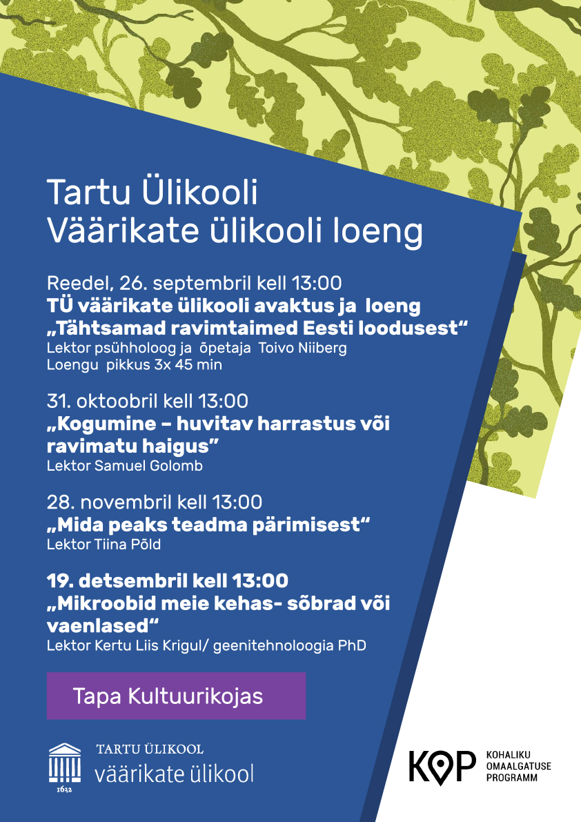 Loengud toimuvad Tapa Kultuurikeskuses algusega kell 13.00. Olete oodatud!